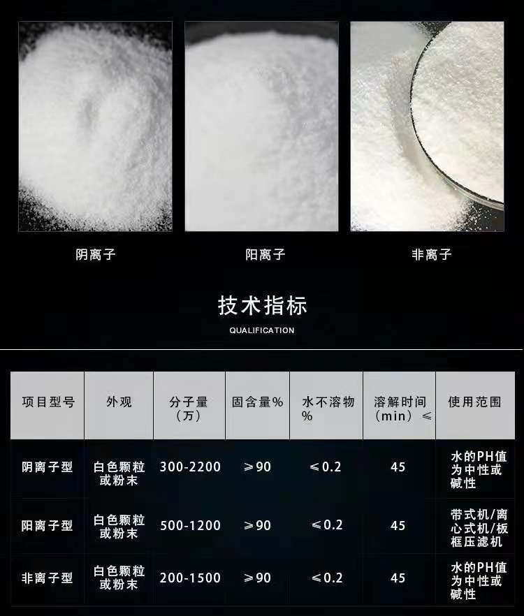 絮凝劑中有聚丙烯酰胺,而聚丙烯酰胺中有——陽(yáng)離子 陰離子 非離子。 陽(yáng)離子適用于濃度較高的帶正電荷的無(wú)機(jī)懸浮物,PH制為中性活堿性溶液中。 陰離子適用于帶負(fù)電荷,含有無(wú)機(jī)物質(zhì)的懸浮物。非離子聚丙烯酰胺使用與有機(jī) 無(wú)機(jī) 混合懸浮物的分離。溶液呈酸性或中性。